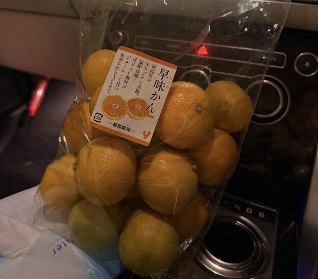 スーパーで買ったはずのみかんがない。車の中を探してもない、ない!父は見ていないという。ダメ元でスーパーに電話してみかんの忘れ物がないか聞いてみる。すると、ありました!!なんと運がいい!取りに来てくれたらわかるようにしておきます、と言ってくださったので、実家から帰ってくる途中で寄ってもらってきた。写真は回収した直後のみかん。ありがたいなあ!父が無類のみかん好きで、みかんを持ってこなかったことを、すごく残念がっていた、、、笑