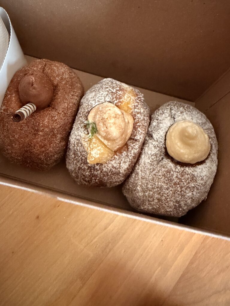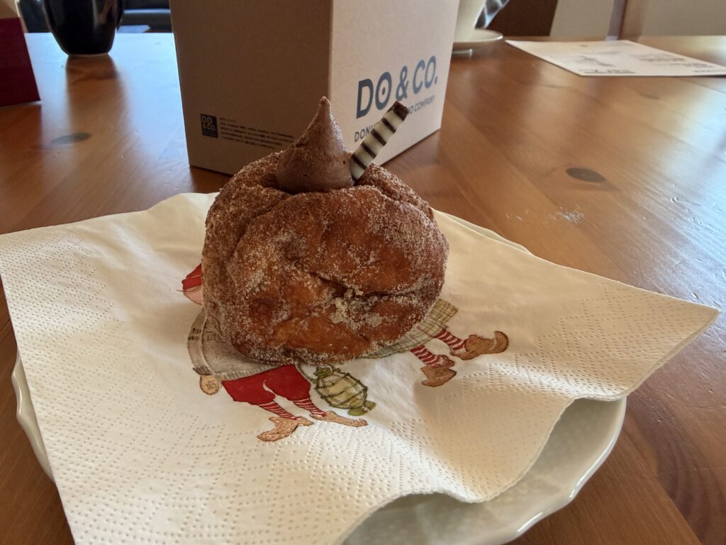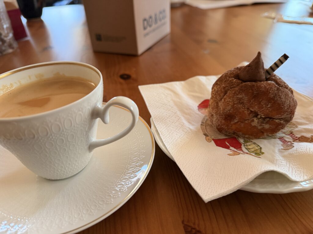 昨日いただいたドーナツをランチに。チャイティと一緒に、ハイカロリー!