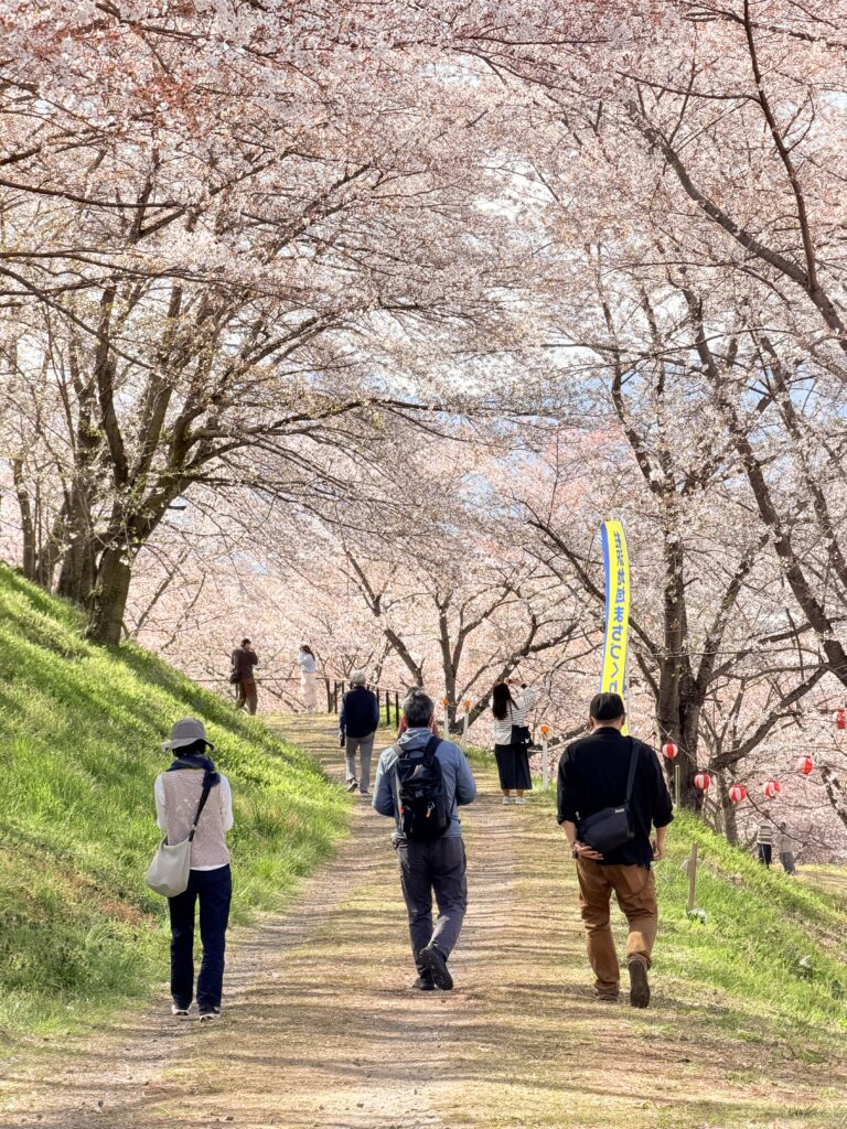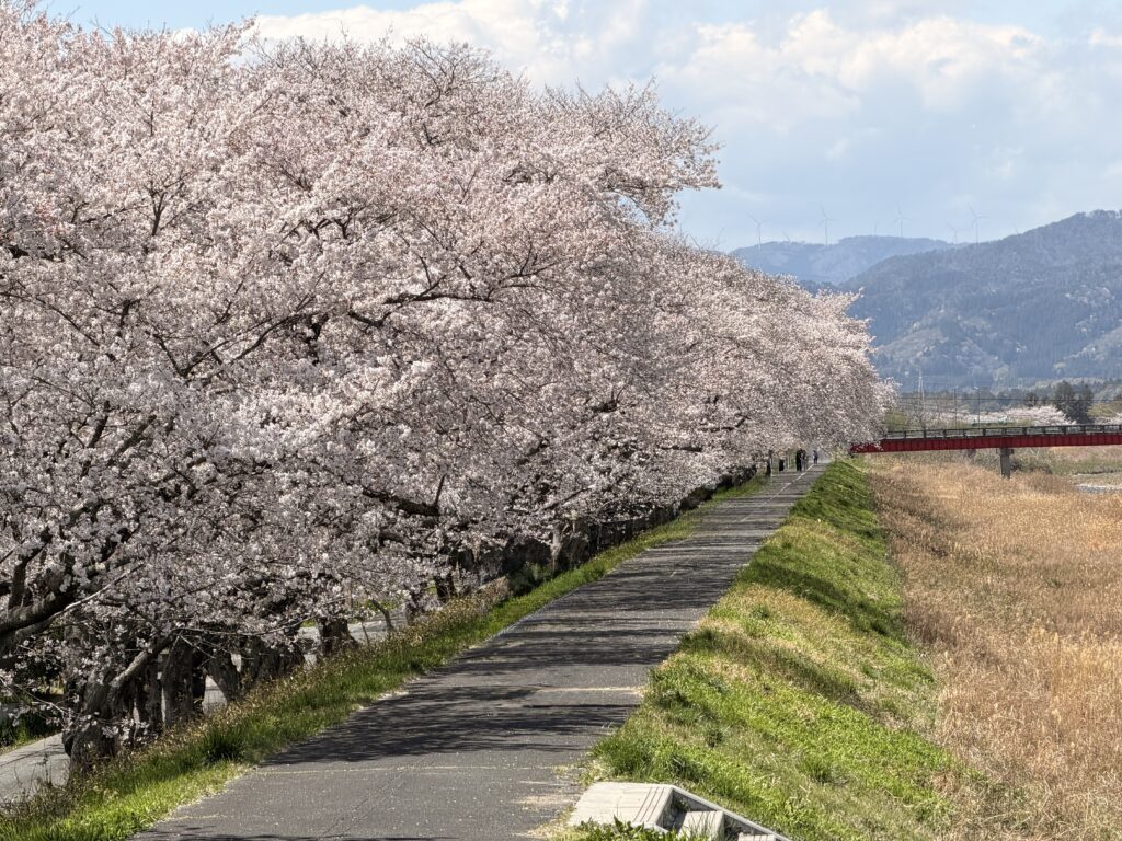 まずは浪江道の駅でお昼ごはん、桜の名所を巡りながらお墓参りも済ます。千葉も東京も葉桜だけど、少し北の福島はちょうど散りかけて、標高を少し上がれば、まだ咲いていないところもある。観光客も少なくて、渋滞もない。ただ台風みたいに風が強い。