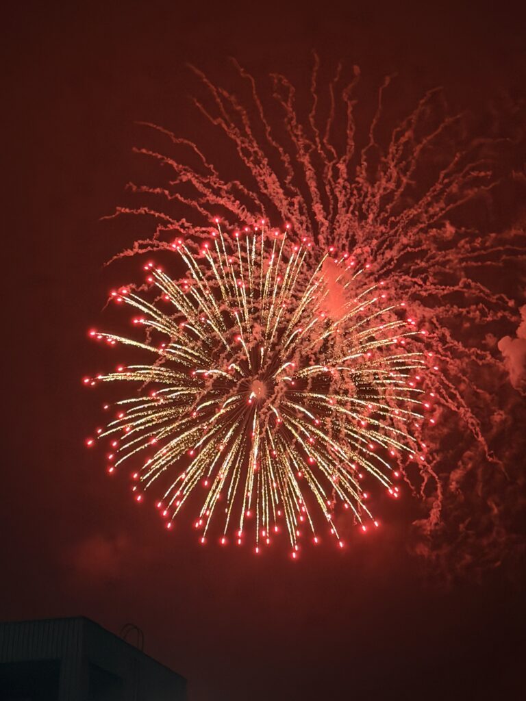 19時に花火が上がり始めて、あっ花火大会だったと気づく。。
