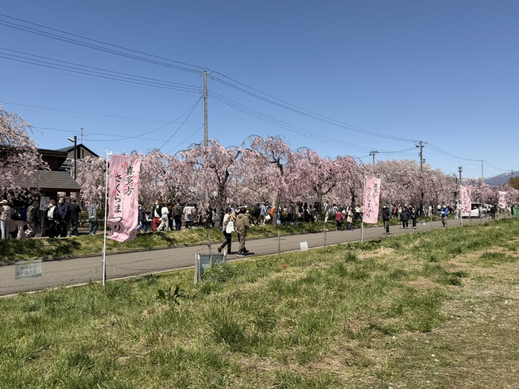 無事に車に戻り、また桜を巡る。喜多方へ降りて、枝垂れ桜の並木をみようという計画だったぇど、観光客が多くて、うんざりしてやめた。そのまま帰途へ着く。