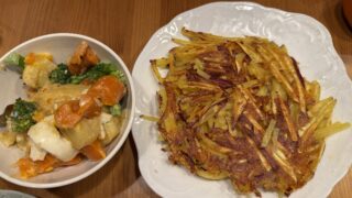 ポテトとポテト 夕飯の準備が遅くなって、ぱぱっと作れるもの、、うーんうーんいつも食材があるようなないような、、状態からダッシュで作る。ゆで卵がたいてい作ってあるので、茹で野菜(レンジでチン)と和える。そしていただいたさつまいものガレット。茹で野菜というのは... 2025.10.01